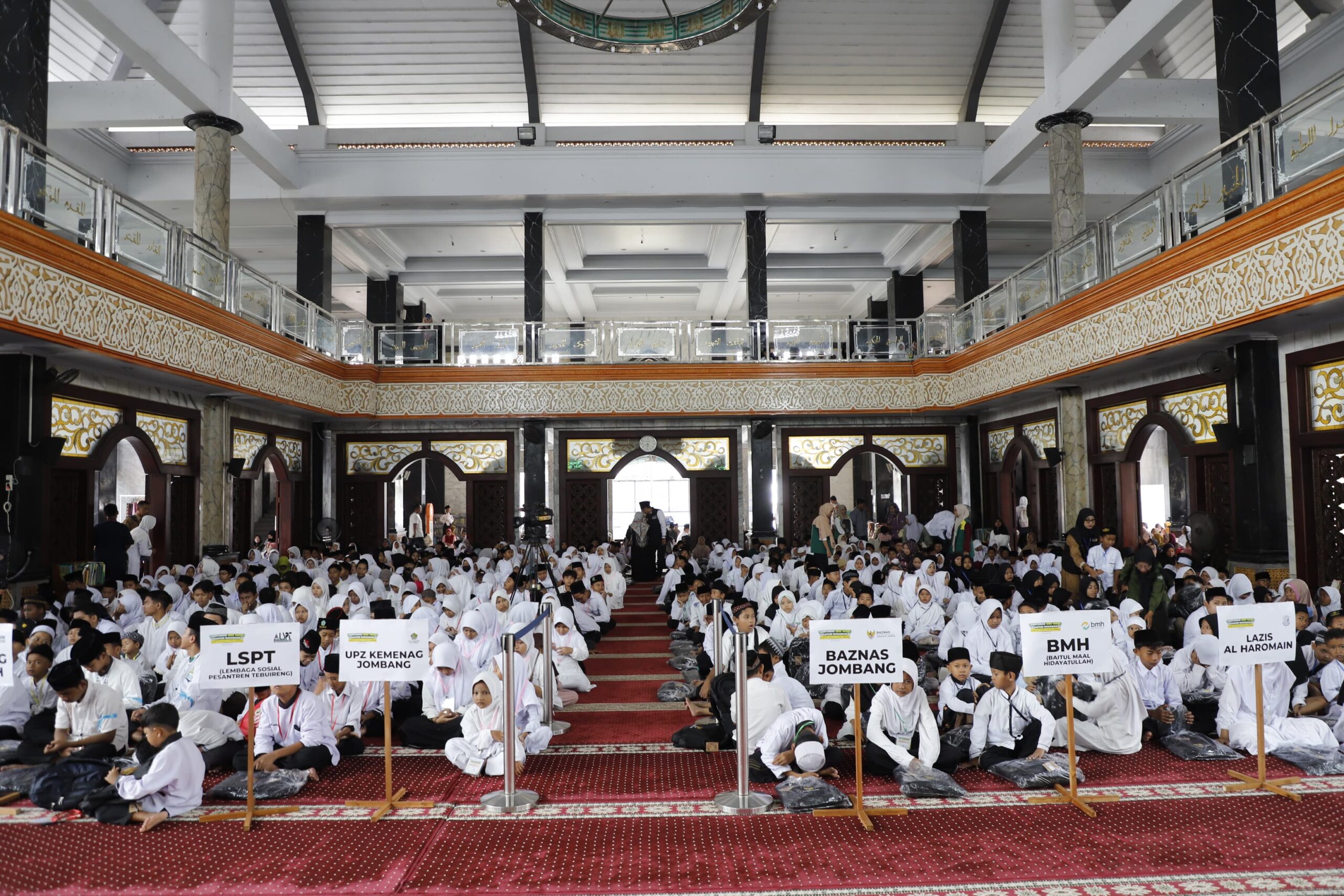 Lantunan sholawat bergema mengiringi penyerahan santunan secara simbolis. Bupati Jombang Warsubi, Wakil Bupati Salmanudin, bersama pimpinan BAZNAS dan dari AFCO Group, tampak akrab menyapa dan menyerahkan bantuan langsung kepada anak-anak.(WAG)