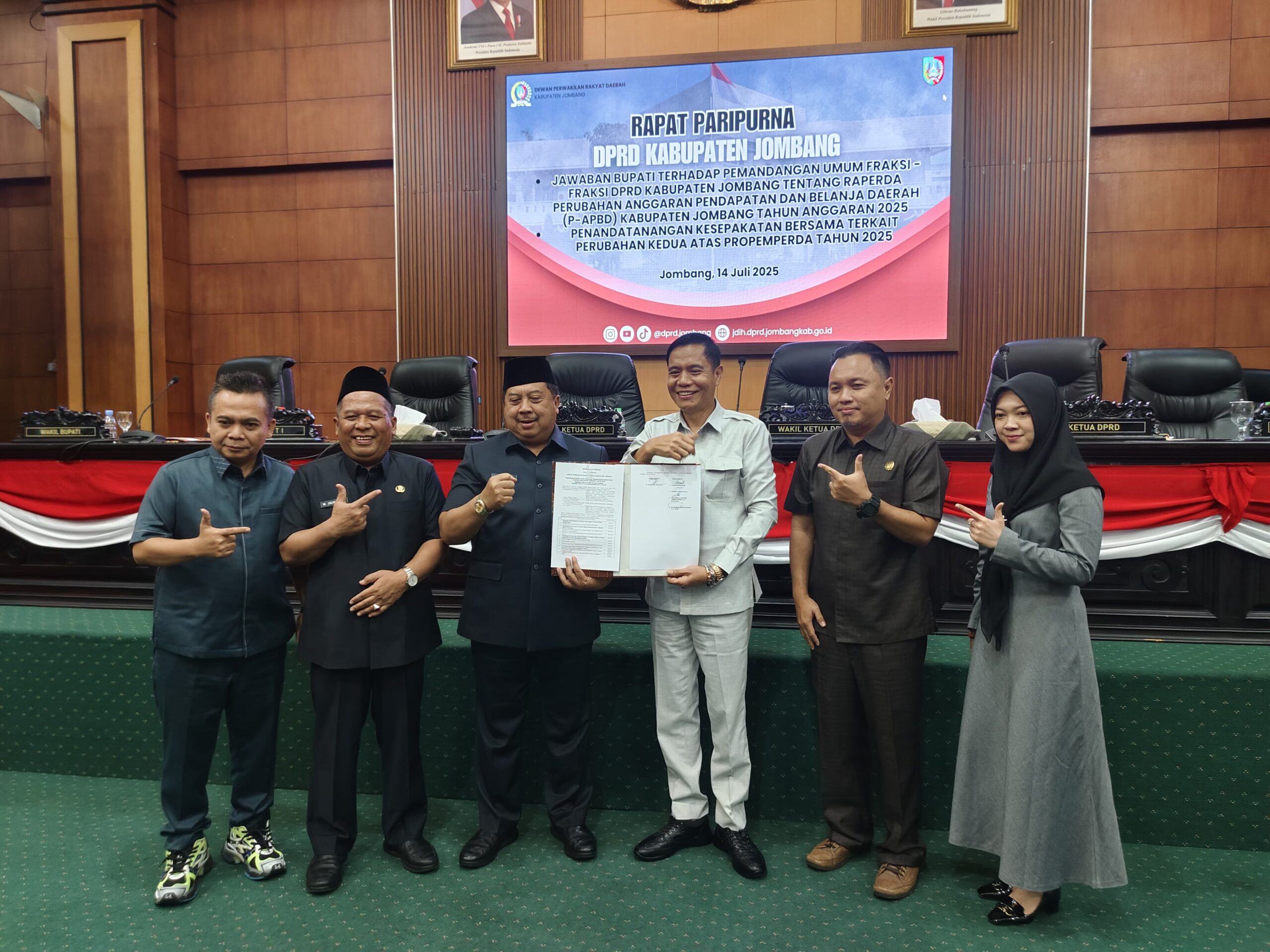 Jatimkita.com – Jombang, Bupati Jombang Warsubi, S.H., M.Si. menyampaikan komitmennya dalam mengarahkan kebijakan anggaran daerah tahun 2025 agar semakin responsif terhadap kebutuhan masyarakat. Hal ini ditegaskan dalam konferensi pers, berisi jawaban atas pemandangan umum fraksi-fraksi DPRD Kabupaten Jombang terhadap Rancangan Perubahan Anggaran Pendapatan dan Belanja Daerah (APBD) Tahun Anggaran 2025, Senin (14/7/2025) di DPRD Jombang.
