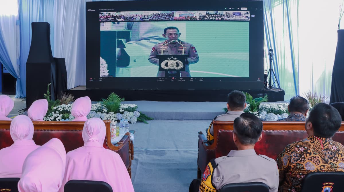 Jatimkita.com – Jombang, Kapolres Jombang AKBP Ardi Kurniawan, S.H., S.I.K., CPHR mengikuti kegiatan Zoom Metting Launching operasional dan grounbreaking SPPG Polri serentak sekaligus meresmikan 3 (tiga) gedung Satuan Pelayanan Pemenuhan Gizi (SPPG) Yayasan Kemala Bhayangkari Cabang Jombang di Kecamatan Gudo, Perak, dan Kudu, pada Jumat (13/2/2026) pagi. Kegiatan dipusatkan di Jalan Raya Gudo, Desa Gudo, Kecamatan Gudo, Kabupaten Jombang.